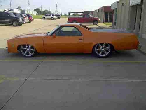 Heres a 1976 Chevy El Camino INSTALLED IN DEC. 2012 BRAND NEW 350 SB CRATE MOTOR WITH NEW WATER PUMP AND A NEW ALTERNATOR WITH LESS THAN 36 MILES ON IT dual exhaust, and air ride. The air ride works great you can control the front and rear to your desired height. It also has some custom INTERIOR