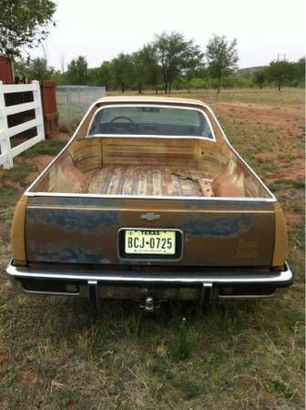 1978 Chevrolet El Camino - no rust through on any body part, floor plan has no rust through at all. Engine is rebuilt 305 with a mild cam and 4 barrel carburator. Tires are all matching with 90% tread. Engines run strong, transmission shifts nice and smoothly. Trans needs a new pan gasket. Suspension and steering are very tight and no issues with the brakes. Has passed recent Texas state inspection and can be a daily driver while restoring, no major issues. Only needs paint and interior work.