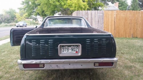 1979 El Camino in real good condition. Not perfect, but far from a bucket. runs and drives. new back tires. no rust that I can find. Floor boards look good. Has small exhaust leak where muffler connects to tail pipe. Has minor scratches and dings. Repainted approx. 5 years ago. All glass good. Choke on Carb needs to be fine tuned. Radio not in it, but comes with it. Transmission rebuilt a year ago. Has a cool custom tailgate. We bought it to perfect it, but sadly with kids, work, life we never have gotten around to doing much to it. :( Needs to go to someone who can appreciate it more. I am listing everything I can possibly think of. Vehicle is sold as is. Buyer responsible for pick up or shipping. Non-Refundable Deposit of $500 required within 48 hours of auction. Please ask any questions you may have before bidding. Thank you :) On Jul-28-14 at 08:39:34 PDT, seller added the following information: oops - 350 Motor & th350 Transmission! |