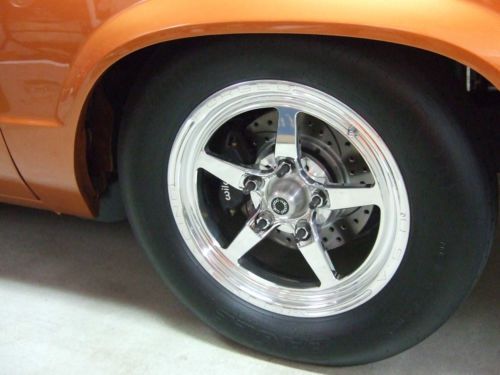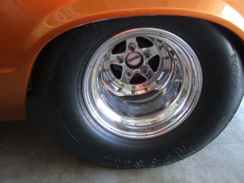 Show car paint!! LeMans Sunset orange, Car Professionally built in 2007, Owner is very meticulous and loves Show cars! only made 15 test passes, Built Charley's Speed and Machine 540 Big Block, dyno'd at 775HP, SRP, Canfield aluminum heads, Roller Comp cam, Built turbo 400 w/trans brake, Chassis Engineering back half w/ 4 Link, CE 9 inch rearend w/spool, 35 spline, 4.11, Wilwood brakes, 10 point cage,Weld wheels, Hoosier, Hurst. YOU WON'T BE DISAPPOINTED!!! Selling because of owners health conditions. Killer race car yet a FULL SHOW CAR TOP TO BOTTOM!!!! Can easily be made street legal! all lights function and would need exhaust and street tires. CLEAR NEBRASKA TITLE, Enclosed Delivery available at additional cost. |