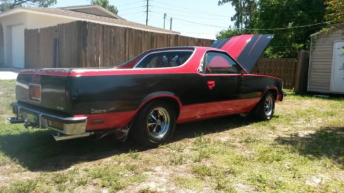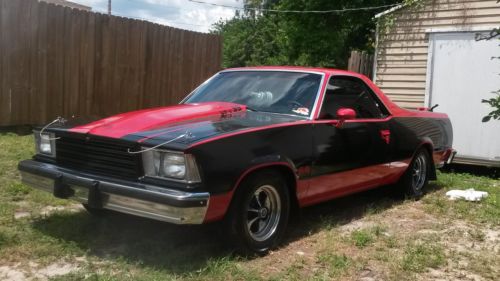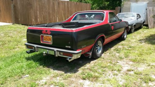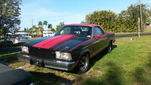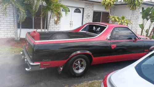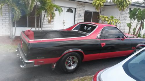 1979 El Camino 350 ci 4 barrel Holly with edelbock semi High rise Manifold. Completely rebuilt Transmission including planetary gear and B&M Shift Kit and Ratchet shifter, JUST DONE ! "0" miles on Rebuild..NEW U-Joints as well with "0" miles! New exhaust, Sunroof. Custom 2 tone Black and Red with BIG Multi Colored Flake Paint and a total of 7 coats of clear! New fan clutch, hoses, and she has a working cowl induction hood!! new brakes and tires goes straight looks Great Sounds Great! Thumbs up all day long! Air conditioner has been upgraded to R134 and works great! Nice stereo Custom interior. 3=point harness seat belt system! White face gauges Big RPM with speed set and more. The body looks good and so does the under belly and bed!..Being a Florida car..No Rust. beautiful for the Day/night cruises. Make an Offer! Just drove her in 2 parades over the Memorial Day Weekend! Lots of thumbs up and conversations! Lots of compliments on the look and the low rumbling sound. Very old school Muscle sound! Feel free to make an appointment to see her so you get bid accordingly (772)240-6762 I just had the windows Professionally Tinted and a couple coats of wax.