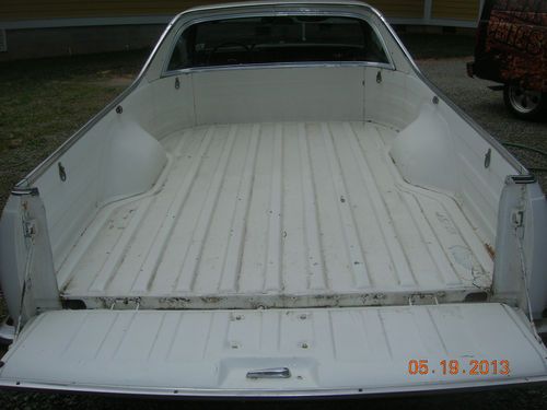 81 El Camino, Rebuilt Chevy 3.8 V6 with new 2 bbl. carb. NO feedback carb. or computer. Rebuilt trans., new brakes , new front shocks, still has factory air shocks on rear! Great Tires, PS, PDB, factory A/C all there but not working. Delco AM/FM radio. Oxblood red interior. Paint nice, only rust is in right rear floor pan area about 6" long X 3" wide, other than that, appears to be solid. Frame and underneath has only light surface rust. This has been my personal truck for years, runs and drives great, drive anywhere, good on gas! Only thing not working is A/C, as far as I know.