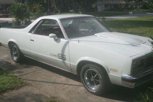 THIS IS A 1982 CHEVY EL CAMINO SS CLONE 1970'S LT1 CORVETTE 350 V8 MOTOR .30 over LUMPY CAM 700R TRANS, 4spd B&M SHIFT POWER STEERING POWER BRAKES BIG ELECTRIC RADIATOR FAN (out of a police car) 4 BBR HOLLEY CARB HEADERS THRUSH MUFFLERS ALUM RADIATOR HEI DIST AIR COND NOT HOOKED UP BED FLOOR HAS RUST / HOLES EXTRA REAR - A GRAN NATIONAL REAR I WAS GOING TO PUT IN BUT DIDN'T GET AROUND TO IT ***THIS IS A 1982 ELCAMINO WITH CLEAR TITLE - NOT 1980 |