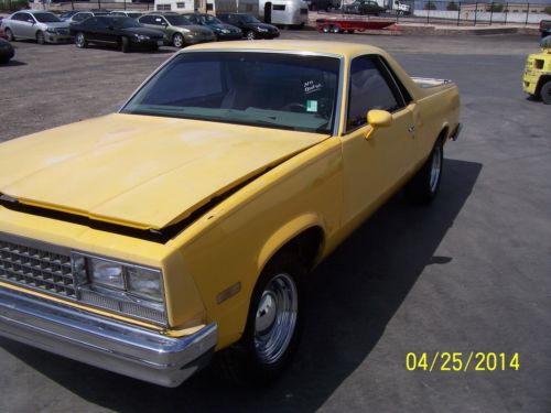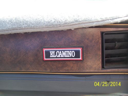 I HAVE A 1983 CHEVROLET EL CAMINO FOR SALE. THE ODO READS 36235. THE BODY IS IN OVERALL GREAT SHAPE. IT APPEARS THAT IT WAS IN MID-RESTORATION.THERE IS NO ENGINE PRESENT BUT THERE IS AN AUTOMATIC TRANS THAT IS IN THE VEHICLE. THE INTERIOR IS IN OVERALL GOOD SHAPE. ALL ORIGINAL PARTS APPEAR TO BE THERE. PLEASE EMAIL ME WITH ANY QUESTIONS THAT YOU MAY HAVE OR ANY ADDITIONAL PHOTOS YOU MAY NEED. THANK YOU AND BEST OF LUCK. |