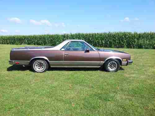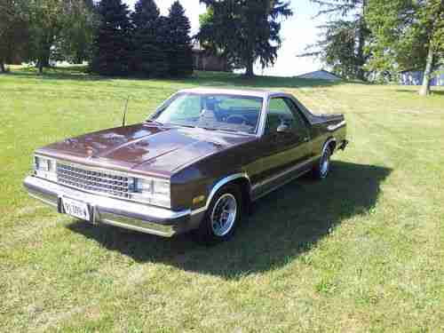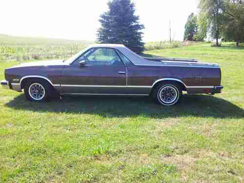 Up for auction is a very nice, mostly original 1983 Chevy El Camino. Car has roughly 87000 original miles. Was repainted about 5 years ago at a cost well over what we are trying to get out of it. Does have a spot of rust about the size of a quarter behind right rear tire. Just a bubble, not a hole. Very solid underneath. No rust in the normal El Camino spots. Interior is original also, including the stock am/fm cassette radio. Engine and transmission work as they should. Has a fresh tune up (plugs, wires, cap and rotor, air filter and oil change) Also had the a/c repaired and converted to 134. Blows cold. Has tilt, cruise, power steering and brakes. No power windows or locks. Front tires are new. Have original build sheet. Exhaust was been replaced by previous owner. Single exhaust with glass pack no catalytic converter. Sounds good and is not rusted. Originally a Texas car. I have tried to list all that I could think of. Call or text (309) 314-3375 with any questions. You may have to leave a message as I don't normally answer calls from numbers I don't know (to many salesmen). I will return calls as soon as possible. Thanks for looking.