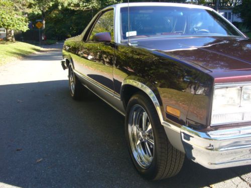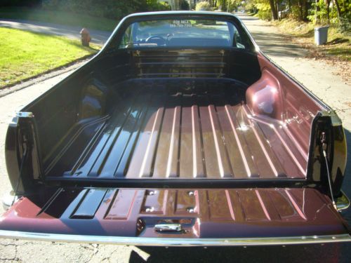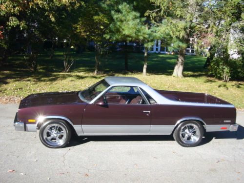 I have decided to list my 1987 El Camino.I have owned this car since 2001,and at that time it had 6800 original miles.The tops of the car were somewhat faded and a water sand and buff could not bring the paint back. At that point I had the whole car taken apart (I have all picts) and repainted by a professional body shop. Since the repaint it has always been stored in a heated garage.I have only driven it approx 3000 miles in the last 13 years !! I am not a fan of rally wheels so i bought a new set of 17" cragar ss chrome wheels with spinners and new michelin radials. My car has factory (working) a/c ,power windows ,power door locks, tilt wheel, factory radio, and the interior is all original except for steering wheel (by prev owner) and i had visors recovered. The interior is in excellent condition !! The bumpers are also original and are a 9 out of 10 . The bed like the rest of the car does not have any dings,scratches,marks of any kind ! The 305 engine is all original even has factory hoses. ** If you are looking for a 1987 (Last Year Made) El Camino that is in excellent condition Then bid to own!! I have tried to describe my car the best i could !! I never thought i would sell it but I have too many toys at this point ,however selling is not a necessity!! Please no low ballers ,scammers , or bothersome brokers !! Any questions, I can be reached @ 508-789-7398 Thanks Happy Bidding!!!