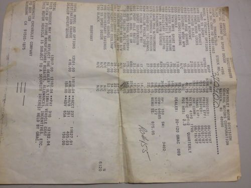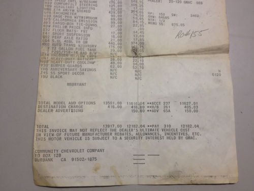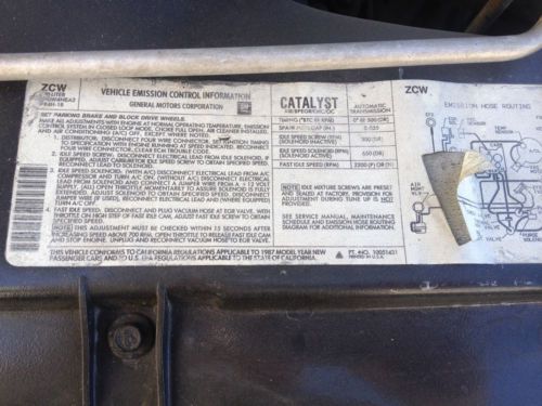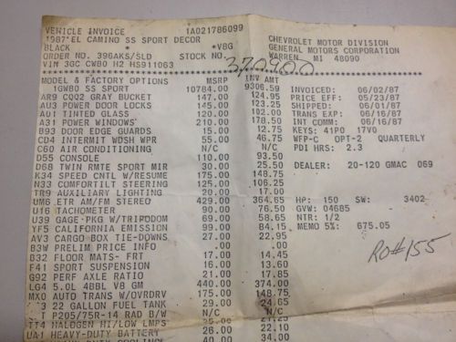 I HAVE FOR SALE A 100% ORIG 1987 SS CHEVROLET ELCAMINO IAM THE SECOND OWNER AND HAVE ORIG BUILD SHEET EVERY THING WORKS ONLY HAS 67K ORIG MILLEAGE, PICTURES TELL ALL! PLEASE CALL HOWARD AT 916-956-6640 FOR ANY QUESTIONS OR TO SET UP AN APPT TO VIEW THIS BEAUTIFUL CAR, BRING YOUR MECHANIC INSPECTIONS ARE WELCOME, TEST DRIVES WITH CASH IN HAND!