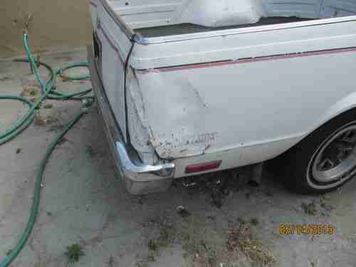 AN ORIGINAL 1987 Chevy El Camino. It was my son’s but he bought a newer car and has no time for this car. It has a rebuilt Transmission less than a year ago and it has a 305 engine. And 4 tires are less than 3 months used. Does have a hit in the back as you can see by the pictures provided. That's probably why it became a salvage...