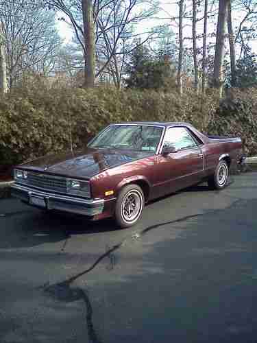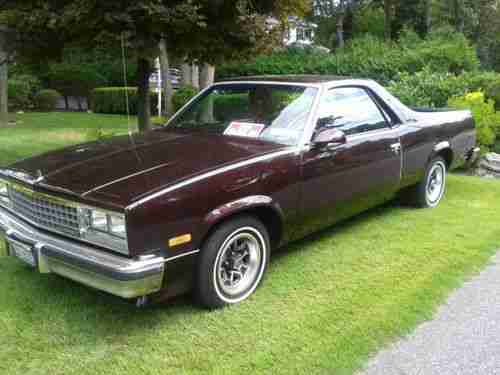 1987 el camino has complete new interior seats carpets headliner visors console cover and dash.some chrome is new. new paint 3 years ago has a few chips,buy still nice.no rust all new body replacement parts used.tires are new brakes and exhaust.car has new carb intake and distributor alternator is rebuilt. many new smaller parts too many to mention.trans was rebuilt and drive shaft also. it is an everyday driver not a show car i only use it on dry days.it has seen rain in my driveway when i cannot put in garage.basically it is garage kept and adult owned. i believe i am the third owner.i purchased it in cranston rhode island 3 years ago. i will be moving to florida soon and want to sell some of my toys. no trades cash or certified funds only all payments to me first and then in 15 days i will let car go to any shipper local cash and carry. no scams please i have been down that road email me with any questions before purchase i will answer you honestly and straight up.the car has been good to me with minimal amounts of maintenance thank you for looking