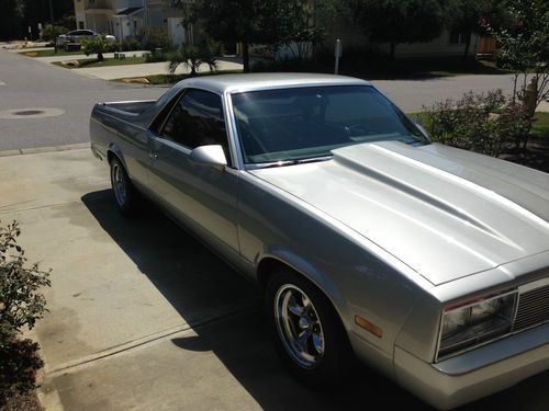 This 87 El Camino was built to move. ZZ383 strapped to a turbo 400 tranny with 3.73 gears in the back. The front and rear suspension was redone so it would hook up right. All of the major mechanical work was done in 2010 and I have all of the corresponding paperwork. The exterior is in excellent condition, silver with ghost racing stripes. The bench seats have been re-covered in gray and black tweed with chevy bow ties in the head rests. The stereo has also been re-done with a pioneer 7" touch screen that folds out and infinity speakers (2x3",2x4.5",2x 6x9"). The rest of the interior is still stock but in good condition. I've had it since 2007 and I'm getting rid of it due to space... new home only has a one car garage!!! She's always garage stored. Mileage is an estimate... I put the new motor in 2010 and have spent 18 months since out of the country, so not very many miles. The bed has been rhino lined and the interior has been dynomatted. This thing will blow the doors off of a Corvette...