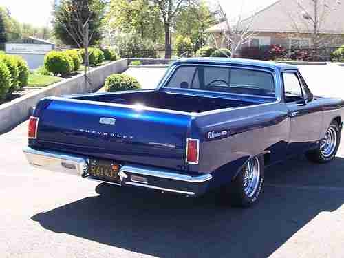 I have up for bid one awsome 1965 elcamino, It has the original 283 c.i. v 8 with a muncie 4 speed all rebuilt. Pretty much every thing in this car has been gone through. It has an awsome mirror finish paint job, the color is a royal blue metalic pearl.The car is an original California car. It has power sterring, power brakes,four speed manual transmission,Indash gauges even a tach. Car runs and drives good.$2000.00 deposit with in 24 hours of auction end. Balance due within 7 days of auction end. buy responceable for all shipping cost. See listing for payment details. Car sold as is. email with any questions before you bid. Car is for sale localy so I reserve the right to pull listing if sold. Thank you and happy bidding!