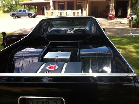 Engine: 454 Big Block (rebuild 200 miles ago), Aluminum 2-4 Intake, 2 600 Holleys, Aluminum timing cover, water pump, oil pan, March brackets. Chrome alternator, power steering pump and brake booster. Electric fans, Aluminum radiator Trans: 350 trans, 2500rpm stall Interior: Completely redone, Dash has all new gauges and shifter. I also had a custom color matched full roll cage installed when the rear of the car was being modified. The back half of the car is pro built with 15x16 rear (tires are 22in wide) and 15x4 fronts. This 1985 Chevrolet El Camino is ready for any car show, drive in or drag strip around. If you have any questions, please email me for more information. I might also be interested in a trade for another street rod or truck. Thank you, Greg |