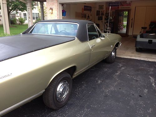 What we have here is a real nice 68 Elky. I was told by the previous owner, who owns a body shop that its a ten yr old resto. Looking at it I'd say yes. Heres the deal: rebuilt 2spd pwr glide/ everything is there. New $3000.00 rear end. ( strange axles, posi-373 gears) no rust. It does NOT have your typical rust areas. It has a 78-81 SBC but it retains old school points, cap, condenser , cap and rotor. A Q-jet carb. The pictures are before I started taking it a part to really detail it. The lower front fenders need attention behind the tires. I'm replacing the pass side inner fender well. I'm replacing the header panel.