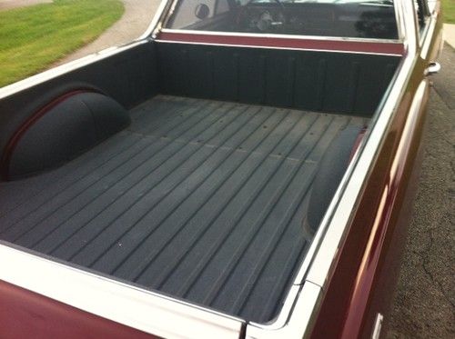 Where do we start the car is just absulutlely flawless has an amazing lazer straght body with a beautiful brandy wine base coat clear coat paint job buffed and polished like a sheet of glass has a mild built 350 engine with some goodies a built 700 r 4 trans with a mild shift kit Power steering Power disc brakes front upgrade all the chrome bumpers and door handles are perfect the bed all very light texture coated tires and wheels dual exhaust vintage a/c, cd stereo interior sweet all dash gauges and dash itself in excellent condition painted same as car with build OEM steering wheel like new all weather seals replaced all glass perfect just flat out a one of a kind classic its a California car so no rust never had any when we say this car is straight we mean not a ripple not a parking lot ding no no where runs and drives great can drive this car anywhere ( The car is also for sale on our lot as we have a few classic muscle cars in the warehouse ) we are mainly a custom jeep restoration shop been in Business over 18 years Please Look at pics close as it looks fantastic and the pics don't even show the real beauty of this car