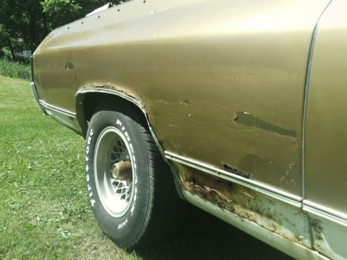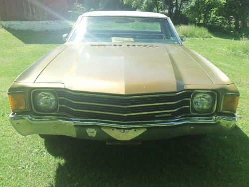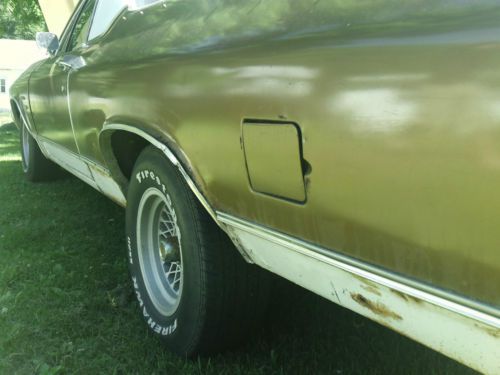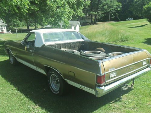 NO RESERVE AUCTION, BID TO WIN BID ONLY IF YOU INTEND TO PURCHASE CLASSIC CHEVROLET NO RESERVE AUCTION *PERFECT RUNNER FOR YOUR "HOTROD" GARAGE* CLASSIC 1972 CHEVROLET EL CAMINO 350 V8 ENGINE 2V CARBURETOR TH350 AUTO TRANS EXCELLENT PROJECT CAR MAKE THE CLASSIC OF YOUR DREAMS HERE IS YOUR CHANCE TO BE A "CLASSIC CAR OWNER" FOR A SMALL INVESTMENT NICE CLOTH BENCH SEAT DASH PAD IN VERY NICE CONDITION BODY FAIR CONDITION WOULD MAKE A PERFECT SHOP TRUCK IN AS IS CONDITION RUNS AND DRIVES PERFECT I HAVE BEEN DRIVING THIS CAR IN AS-IS CONDITION.. IT'S A FUN CAR TO DRIVE $$$$ SAVE BIG $$$$ THIS IS A NO RESERVE AUCTION AND WILL BE SOLD TO THE HIGHEST BIDDER.. CAR DOES START, RUN, AND MOVE CAR IS OVERALL ROUGH CONDITION WILL NEED SOME WORK. THE CAR IS "ALL THERE" AND PERFECT FOR RESTORATION THE CAR HAS PERIOD CORRECT APPLIANCE AFTERMARKET WHEELS AND I AM INCLUDING THE ORIGINAL WHEELS AND HUBCAPS GOLD/WHITE EXTERIOR, BLACK INTERIOR SEATS ARE IN VERY NICE CONDITION. CARPET POOR, BUMPERS ARE BENT. THIS CAR DOES HAVE TYPICAL RUST FOR A CAR THIS OLD. FENDERS,DOORS,QUARTER PANELS,FRAME AND BODY ALL HAVE SOME RUST. THIS CAR DOES RUN AND DRIVE. DRIVES NICE AND TIGHT, NOT A OLD RATTLE BOX.. THIS CAR WAS FOUND IN A BARN IN EASTERN PA. STILL HAS A 1999 PA INSPECTION STICKER ON IT. AND A COPY OF HOTROD MAGAZINE FROM '99 ON THE SEAT BODY ID TAG INFORMATION: ST72 13680 B052731 TR 720A 57T 9B B 0853 **MILEAGE IS ACTUAL ON TITLE** MILEAGE ON CLUSTER SHOW 51321 PLEASE CHECK MY OTHER AUCTIONS FOR REBUILDABLE CARS, TRUCKS, OLDER CLASSICS, AND PARTS NO RESERVE AUCTION, BID TO WIN