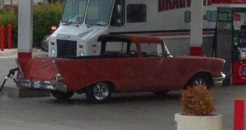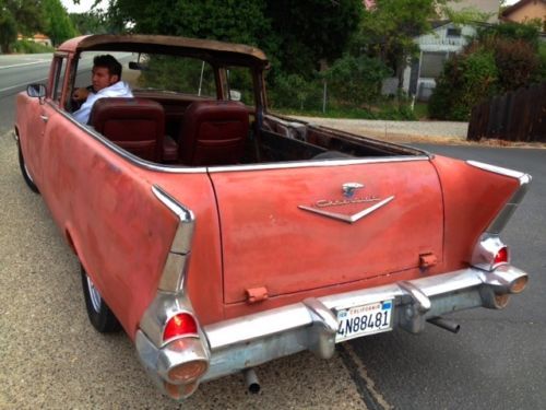 wants a bad little 57 Chevy bargain today? Check out this late 60's built ‘57 El Camino/UTE You will not see anything like this… Back when a 1957 was just another old car in the late 60's, these nuts took a perfectly good '57 4 door wagon and make it a UTE! Still retains the original 283/ 2-speed Power glide. Receipts for $1750 at a local shop to re-do the brakes, clean fuel system, rad, service trans and tune up to put her back on the road. It has a New California Registration and License thru 2014. Clean title in my name. Ready to go, runs and drives well. It’s