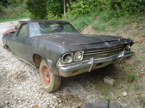 1968 el camino parts car. Car was originally a 327 car with factory air conditioning, automatic steering column, good parts with no title or rear end. Will sell the whole car and you can pickup or could possibly meet if close by. do have the complete stainless around the bed in another auction. pictures tell it all but it sis a FACTORY A/C car.