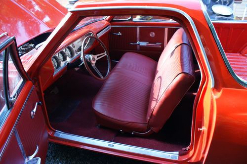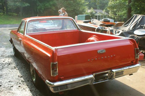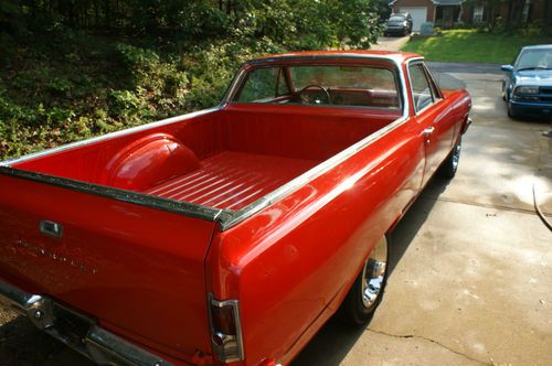 this car is beautiful everything is new!!!...it has a smooth running 1969 350 backed by a turbo 350 trans an a stock 10 bolt rearend, the paint is 2 weeks old an the inside was assembled yesterday, the car speaks for itself , super rust free as well has new exhaust along with headers an its not crazy loud just enough to be heard sounds super, the tires are like new along with trim rings, car is mostly complete, i do have the inner fenders an they will be installed asap, what i am missing is the quarter emblems that say el camino and the chevrolet emblems acrossed the front of hood all other stainless an chrome is there, the inside is all brand new only thing lacked is the headliner but i did buy a new one just not installed yet, does come with the car, other than those few pieces car is tip top, i have way to much invested just trying to move on, PLEASE no low balling these cars are getting harder an harder to find in good shape i'm sure i'm missing something please message me with any question thank u..an this is a factory v8 car ...believe me i know what i have so u dont have to run some bs on me thank u