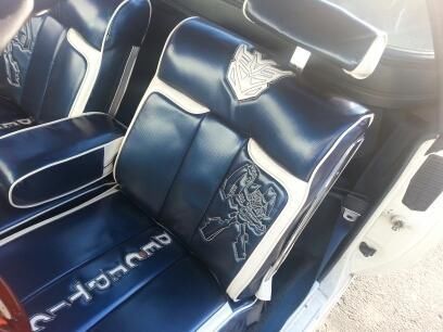 '86 Transformers, Megatron themed, El Camino. Fully loaded. Brand new custom seats with Megatron stitched in both seats. Removable grant steering wheel. Pager alarm. Rhino lined bed that matches interior. Undercoated chassis. 20' iroc chrome wheels. Kill switch. 350 Turbo transmission. New headers. Edelbrock intake. Flowmaster chrome tipped pipes. Dino matted doors and trunk . Wired for sound. Too much stuff to list. Runs great. Second owner. 78k original miles. Serious inquiries only please.