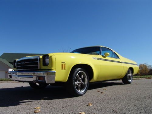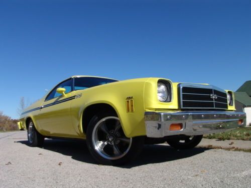 1974 SUPER SPORT EL CAMINO! A TRUE NUMBERS MATCHING 454 BIG BLOCK CAR THAT IS LOADED WITH OPTIONS! AIR CONDITIONING, POWER STEERING, & POWER BRAKES! ALL ORIGINAL & SOLID SHEET METAL! PROFESSIONALLY REPAINTED THIS YEAR! LOTS OF MONEY INVESTED JUST THIS YEAR ALONE! This El Camino is truly remarkable. Not often can I say this but in this case, the photos as well as video do not do this El Camino a bit of justice. Over the last year this El Camino has received a tremendous amount of work. From brake and suspension work to the most significant enhancement, having it professionally repainted. Just within the last two weeks we installed the SS stripes as well as equipped it with a brand new set of 17" wheels and Nitto tires. The only mileage the wheels and tires have seen are what you've viewed within the video. Maybe ten miles at this point? A few years ago, the motor was also rebuilt and as you can see, everything was put back exactly how it should be. Mechanically the El Camino drives out like it just came off of the showroom floor. Body: This El Camino is completely rust free. It retains all of its original sheet metal which is extremely straight. Which means that the El Camino managed to survive over three decades with out ever being molested or hacked on. That in its own is a fairly rare feat! Nearly a year ago, the El Camino was stripped and repainted. The craftsmanship is remarkable. The paint shines out beautifully and the stripes line up extremely well. The El Camino has a brand new setup of 17" custom wheels which are wrapped in brand new high dollar Nitto tires. I actually just purchased these and had them put in less than a week ago! They really give the El Camino that perfect stance. All of the glass through out the El Camino is in excellent shape as is all of the trim. The El Camino also retains its original Jack which can be seen within the photos located below. I also have a brand new El Camino emblem for the tail gate. Engine & Mechanical: The El Camino still retains its original 454 big block. Which according to the previous owner, was rebuilt approximately three years ago and has little to no miles on it. He had driven it about one hundred miles the entire time he owned it and I know that we've put less then that on it since owning it. I would estimate that the motor has less than a thousand miles on it. It does not have a single mechanical issue. It starts up every time and runs out exceptionally well. The same can be said for the transmission. It shifts smoothly through out its gears and has zero mechanical problems. When the motor was installed, that is when new dual exhaust was installed. The exhaust setup compliments the motor very well as it sounds absolutely tremendous. The power steering setup works flawlessly as does the power brake setup. It does have front disc with rear drums. The El Camino does not squeak, shake, or pull when stopping. All of the electrical components through out the El Camino are in excellent working order. The turn signals, head lights, tail lights, the AC, windshield wiper blades, everything works! Even the original 8 Track radio still works (which can be viewed in the video below). The El Camino also is equipped with its original and larger ten bolt rear end. The shocks through out the El Camino have been updated and provide for a much smoother ride. Interior: The majority of the interior has been redone and is of excellent condition. The bench seat has been recovered, a new headliner has been installed, the carpet is new, the door panels are new, and the new dash pad we just installed in the last week. About the only thing that the interior needs are the vents could be repainted. They are not cracked or broken but they are faded. These big block El Caminos are already fairly difficult to find. Now throw in the fact that it retains all of its original sheet metal, that it hasn't been butchered, and that its been fully restored, NOW you've got a whole lot of automobile for a fraction of what it would cost to build one. I personally would love to keep the El Camino but given my current situation, I have to sell it. I will be evaluating all reasonable offers and I will in fact sell the El Camino early as we do have it for sale "locally". I strongly encourage anyone who is interested to please call or email to schedule a time to come check it out. I would also like to add that I am usually on the phone from 7 AM until about 12 AM so you are always welcome to call and if I do not answer, just leave a message and I will return your call immediately. I know from my own experience with purchasing cars online, most of the time it is very difficult to get someone on the phone and to obtain the information you need. So I try to always stay on top of emails and phone calls. We do have a clear title for this El Camino. As always, good luck and happy bidding! Thanks, Shawn (816) 308-0351 I also have several other highly collectible automobiles on eBay right now! Please feel free to check them out by clicking here. Thank you! Need financing? Go to JJ's Best by clicking here, and fill out there quick & simple application. They offer the most competitive rates across the Nation.