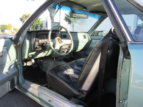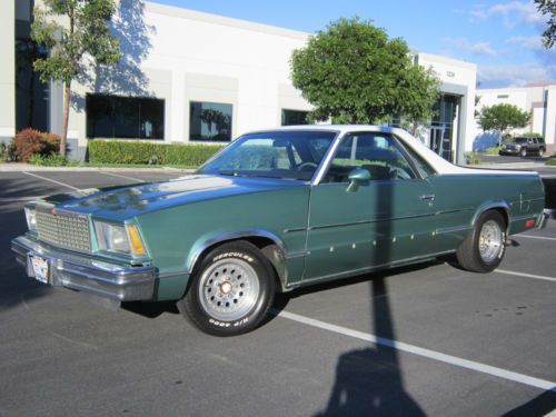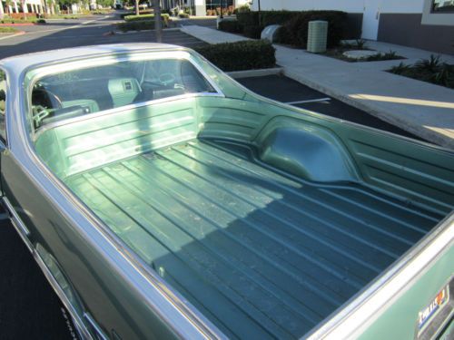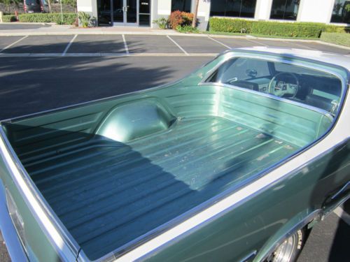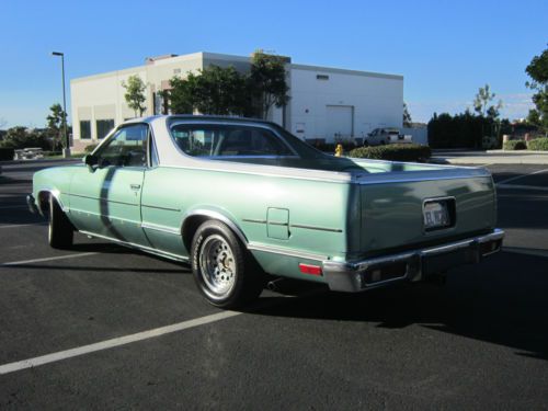 Very clean Southern California car I am selling this for a friend. This was her father's El Camino and now she has decided to let it go. Two tone green and white paint a very solid car with P/S, P/B, A/C and automatic transmission. All original with no aftermarket creativeness. This is the second motor the car has had it was replaced sometime in the 90's by her father, we are looking for the receipts. Well maintained and comes with several years of receipts. Everything works, no trouble lights smoged and ready to go.