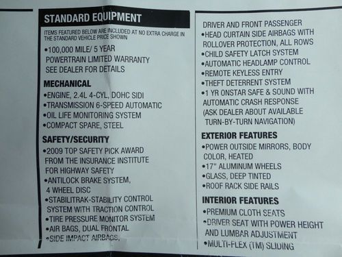 Sub Model: LT1 AWD 2.4L 182 Horsepower