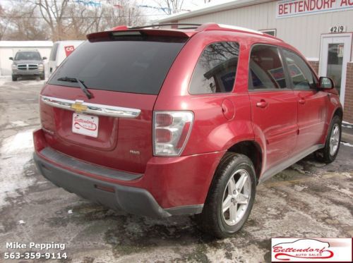 Comes with a powertrain warranty. We cover 50% parts and labor for 30 days or 1,000 miles which ever occurs first. Kelley Blue Book is $10,071. Winning bid does not include doc, title fees, license and taxes. We do not ship you wil have to come arrange shipping.So do you like 3.4-liter V6 engine good for 185 horsepower on your small SUV's? Good! Our 2006 Equinox LT All Wheel Drive is for you! Small SUV's are growing in popularity as drivers refuse to spend obscene amounts of money on fuel but are also hesitant to give up their commanding views of the road. Consumers do not need to give up their cargo space: the Equinox has 35 cubic feet of cargo space which can be upped to 69 cubic feet by lowering the back seat. Check out the 3.4L, 6-cyl engine! Load of power to get ya tooling down the road! The LT has an upscale look and feel with it including leather upholstery heated front seats, sunroof, automatic headlamps, a stylish rear spoiler, good looking wheels, and yes... very affordable. Print this page and call us Now... We Know You Will Enjoy Your Test Drive Towards Ownership! Please Contact Mike Pepping at 563-359-9114 or my cell at 309-716-1305. This vehicle is located at Bettendorf Auto Sales 4219 State Street, Bettendorf, Iowa 52722. www.bettendorfautos.com
