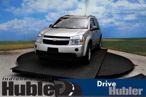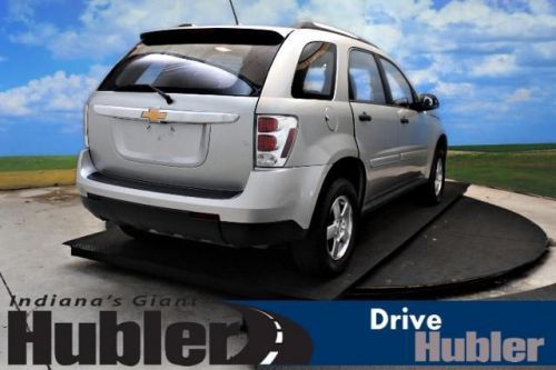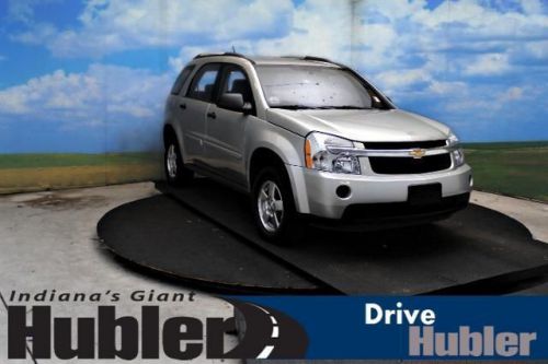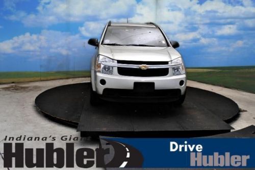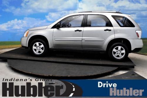 FUEL EFFICIENT 26 MPG Hwy/19 MPG City! Very Nice. LS trim. iPod/MP3 Input, CD Player, TRANSMISSION, 5-SPEED AUTOMATIC, ELEC..., Alloy Wheels, Non-Smoker vehicle, Free Oil Changes For One Year! 5 Star Driver Front Crash Rating. READ MORE!======KEY FEATURES INCLUDE: iPod/MP3 Input, CD Player. Rear Spoiler, Aluminum Wheels, Keyless Entry, Child Safety Locks, Electronic Stability Control. ======OPTION PACKAGES: TRANSMISSION, 5-SPEED AUTOMATIC, ELECTRONICALLY CONTROLLED (STD). LS with Silverstone Metallic exterior and Dark Gray interior features a V6 Cylinder Engine with 185 HP at 5200 RPM*. Non-Smoker vehicle, Free Oil Changes For One Year! ======EXPERTS ARE SAYING: A roomy and versatile cabin, excellent crash test scores and decent fuel mileage make the attractively priced Chevrolet Equinox one of the better choices in the compact SUV field. -Edmunds.com. 5 Star Driver Front Crash Rating. 5 Star Driver Side Crash Rating. Great Gas Mileage: 26 MPG Hwy. ======BUY FROM AN AWARD WINNING DEALER: After more than 50 years in business, The Hubler Auto Group, through the power of ten central Indiana locations, has literally sold hundreds of thousands of vehicles and is one of the oldest and most prolific auto dealers in the State employing 550 people. The Hubler Auto Group can claim the title for selling more G.M. vehicles in the State of Indiana than any other dealer or dealer group, and has earned the right to brag of having the largest and most loyal customer Pricing analysis performed on 6/11/2014. Horsepower calculations based on trim engine configuration. Fuel economy calculations based on original manufacturer data for trim engine configuration. Please confirm the accuracy of the included equipment by calling us prior to purchase. Hubler Chevrolet Shelbyville gives everyone who purchases a new or pre-owned vehicle FREE Oil Changes for a YEAR!!! Call Jack Atwood Pre-Owned Sales Manager for Hubler Chevrolet Shelbyville, today and set up your appointment. 888-804-1029