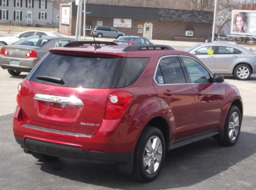 BACK UP CAMERA, REMOTE START, TOUCH SCREEN AUDIO WITH PANDORA AND STITCHER, XM SATELITE RADIO, BLUETOOTH, LOADED UP AND SHARP!!! This 2013 Chevrolet Equinox LT has just 8,400 actual miles, the previous owner was a non smoker, no dings, no dents, no scratches. Serviced, inspected, and a spotless Indiana one owner Carfax history report, this Equinox LT comes with the remainder of the manufacture's 3 year or 36,000 mile bumper to bumper warranty as well as the 5 year or 100,000 mile powertrain coverage. Crystal Red Metallic, Jet Black cloth interior, privacy glass, luggage carrier, 18" chrome sport wheels, Michelin all season tires, mud guards. Loaded with options including the LT trim package, deluxe custom cloth interior, the 5 passenger seating arrangement, driver side six way power seat with lumbar control, reclining front seats, center storage console with cup holders, rear seat cup holders, multi flex sliding and fold down rear seats, rear back up camera, Onstar, remote keyless entry with alarm, remote start, trip odometer and trip computer, compass, outside temperature readout, driver information center, oil life and tire pressure monitors, digital clock, power windows and power door locks, leather wrapped tilt and telescoping steering wheel, cruise control, air conditioning, MYLINK 7" touch screen radio with Stitcher and Pandora, XM satelite radio, am/fm stereo, cd player, steering wheel radio controls, remote controlled and heated outside rear view mirrors, illuminated vanity visors, daytime driving lights, automatic headlamps, multi speed delay windshield wipers, rear window defroster, rear window wiper and washer, and much more. Great gas mileage and powerful 2.4 Litre fuel injected 4 cylinder engine, automatic transmission, traction and stabilitrac stability control systems, dual frontal air bags, frontal side impact air bags, side curtain air bags, anti lock brakes. Just like new condition both inside and out, a sharp Chevrolet Equinox LT. Absolutely the best selection of late model, low mileage cars, trucks, vans, and sport utility vehicles anywhere, like new pre-owned vehicles at used car prices...call 866-779-8263 or visit us at www.prettycarsatnorthgate.com