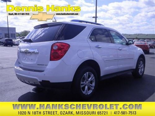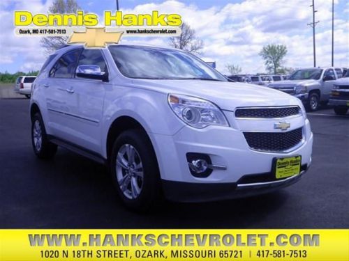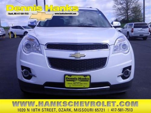 Welcome to Dennis Hanks Chevrolet where youd send a friend! Look no further than your Ozark Chevrolet dealer for new and used cars. We also proudly serve Springfield Nixa Branson and Southwest Missouri Chevrolet customers. We are proud to be celebrating our 28th anniversary as a 3rd generation family-owned store. For further assistance contact us by phone or email and our friendly staff will help you with all your auto needs. Awesome!!! Chevrolet CERTIFIED! This admirable 2013 Chevrolet Equinox LTZ AWD with its grippy AWD will handle anything mother nature decides to throw at you!!! Tired of the same dull drive? Well change up things with this flexible SUV*** Priced below NADA Retail!!! What a value. This is the vehicle for you if you're looking to get great gas mileage on your way to work! A wealth of optional equipment means that you no longer have to sacrifice: 8-Way Power Driver Seat Adjuster (Includes power lumbar) a center channel speaker in upper IP and sub-woofer on the rear shelf) Front Halogen Fog Lamps Heated Driver & Front Passenger Seats Inside Self-Dimming Rearview Mirror Pioneer Premium 8-Speaker System (Includes 250-watt mid-range speakers in each door Rear Park Assist) Remote Vehicle Starter System Safety Package (Forward Collision Alert & Lane Departure Warning tweeters in A-pillars...Chevrolet Certified Pre-Owned means that you not only get the reassurance of a 12mo/12000 mile Bumper-to-Bumper limited warranty and a 2 year/24000 mile Standard CPO Maintenance Plan but also up to a 5-Year/100000-Mile Powertrain Limited Warranty a 172-point inspection and reconditioning process 24hr roadside assistance and a complete vehicle history report. Dennis Hanks Chevrolet, "Where you'd send a friend."