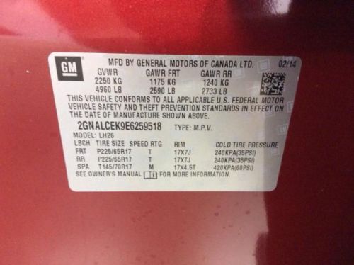 VIN (Vehicle Identification Number): 2GNALCEK9E6259518