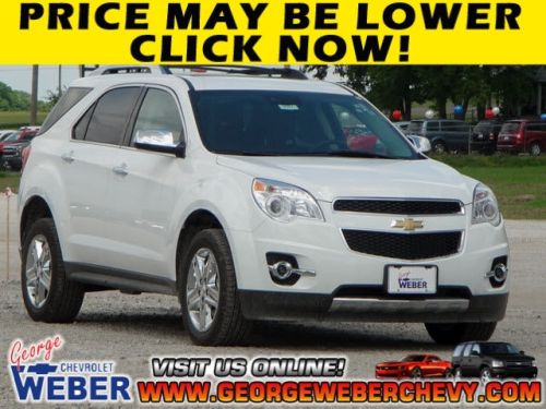 PRICE MAY BE EVEN LOWER THAN SHOWN! TEXT Price to 50123 - CLICK Get A Quote - CLICK Chat Live Now - or CALL NOW for YOUR EXCLUSIVE INTERNET PRICE! We are minutes from St. Louis & the JB Bridge - Visit GeorgeWeberChevy.com Offer expires SOON! ======KEY FEATURES INCLUDE: Leather Seats, Heated Driver Seat, Back-Up Camera, Premium Sound System, Satellite Radio, iPod/MP3 Input, Onboard Communications System, Chrome Wheels, Remote Engine Start, Heated Seats, Heated Leather Seats. MP3 Player, Privacy Glass, Keyless Entry, Steering Wheel Controls, Child Safety Locks. ======OPTION PACKAGES: ENGINE, 3.6L DOHC, V6 SIDI (SPARK IGNITION DIRECT INJECTION) with VVT (Variable Valve Timing) (301 hp [224.4 kW] @ 6500 rpm, 272 lb-ft [367.2 N-m] @ 4800 rpm), SUNROOF, POWER, TILT-SLIDING WITH EXPRESS-OPEN AND WIND DEFLECTOR, LPO, TRAILERING EQUIPMENT PACKAGE: includes Class II 1-1/4 receiver hitch and 4-wire connection, LTZ PREFERRED EQUIPMENT GROUP Includes Standard Equipment, TRANSMISSION, 6-SPEED AUTOMATIC WITH OVERDRIVE (STD). LTZ with Summit White exterior and Jet Black Perforated Leather interior features a V6 Cylinder Engine with 301 HP at 6500 RPM*. ====== DRIVE WITH CONFIDENCE: Coast-to-Coast piece of mind warranty coverage! 3-Year/36, 000 Mile Bumper-to-Bumper Warranty, 5-Year/100, 000 Mile Powertrain Limited Warranty, 5-Year/100, 000 Mile 24/7 Roadside Assistance, Courtesy Transportation, & 2-Year/24, 000 Mile Oil Change & Tire Rotation Program!Great Gas Mileage: 24 MPG Hwy. ======BUY FROM AN AWARD WINNING DEALER: George Weber Chevrolet dealership of Columbia Illinois is just a short drive from St Louis, Arnold, Festus, Fenton, Belleville Horsepower calculations based on trim engine configuration. Fuel economy calculations based on original manufacturer data for trim engine configuration. Please confirm the accuracy of the included equipment by calling us prior to purchase. George Weber Chevrolet is your St. Louis Chevrolet Dealership for over 110 years! We have over 2,400 New & Pre-owned cars, trucks, & SUV's to choose from and will do whatever it takes to give you the best price and "the best car buying experience" EVER! We are only minutes across the JB Bridge on Highway 255 in Columbia Illinois. CLICK or CALL TODAY