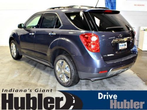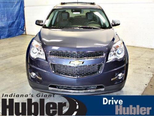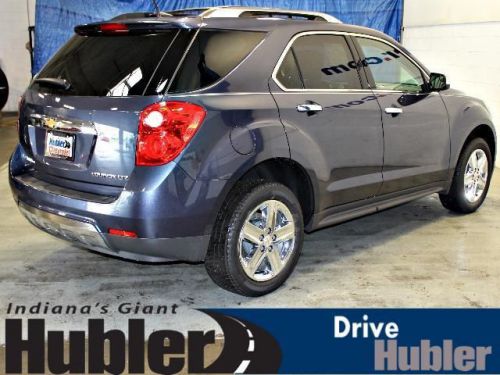 Sunroof, Heated Leather Seats, Satellite Radio, Premium Sound System, Onboard Communications System. LTZ trim, Atlantis Blue Metallic exterior and Jet Black Perforated Leather interior. FUEL EFFICIENT 29 MPG Hwy/20 MPG City! READ MORE!======KEY FEATURES INCLUDE: Leather Seats, All Wheel Drive, Heated Driver Seat, Back-Up Camera, Premium Sound System, Satellite Radio, iPod/MP3 Input, Onboard Communications System, Chrome Wheels, Remote Engine Start, Heated Seats, Heated Leather Seats. MP3 Player, Privacy Glass, Keyless Entry, Child Safety Locks, Steering Wheel Controls. ======OPTION PACKAGES: SUNROOF, POWER, TILT-SLIDING WITH EXPRESS-OPEN AND WIND DEFLECTOR, TRANSMISSION, 6-SPEED AUTOMATIC WITH OVERDRIVE (STD), ENGINE, 2.4L DOHC 4-CYLINDER SIDI (SPARK IGNITION DIRECT INJECTION) with VVT (Variable Valve Timing)(182 hp [135.7 kW] @ 6700 rpm, 172 lb-ft [232.2 N-m] @ 4900 rpm) (STD), LTZ PREFERRED EQUIPMENT GROUP Includes Standard Equipment. LTZ with Atlantis Blue Metallic exterior and Jet Black Perforated Leather interior features a 4 Cylinder Engine with 182 HP at 6700 RPM*. ======EXPERTS RAVE: Edmunds.com's review says Seating comfort and legroom is good all around, and the sliding and reclining second-row seats allow you to expand the amount of legroom in the rear.. Great Gas Mileage: 29 MPG Hwy. ======MORE ABOUT US: After more than 50 years in business, The Hubler Auto Group, through the power of ten central Indiana locations, has literally sold hundreds of thousands of vehicles and is one of the oldest and most prolific auto dealers in the State employing 550 people. The Hubler Auto Group can claim the title for selling more G.M. vehicles in the State of Indiana than any other dealer or dealer group Horsepower calculations based on trim engine configuration. Fuel economy calculations based on original manufacturer data for trim engine configuration. Please confirm the accuracy of the included equipment by calling us prior to purchase. FREE Window Tint OR Unlimited 1 Year CarWash Pass with any vehicle purchase.* Central Indiana's LARGEST Chevy Dealer! We have great finance rates and rebate incentives available on our new vehicle inventory! Call us today for the details at 866-797-3549. Our Internet Customer Care Team is on-hand to take your call! *Some restrictions may apply. See dealer for details.