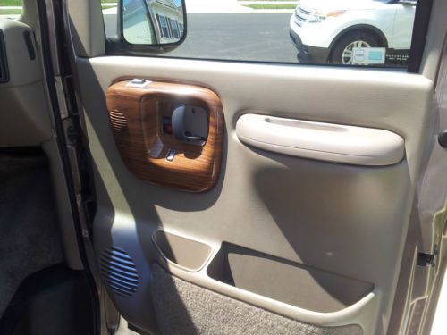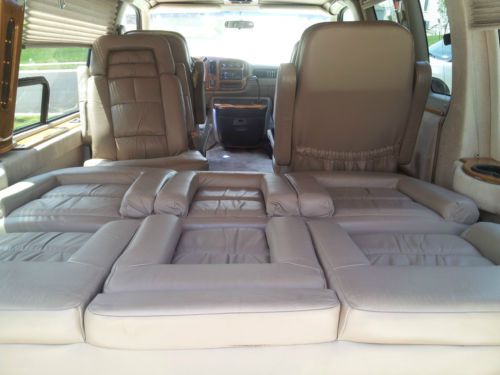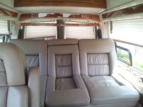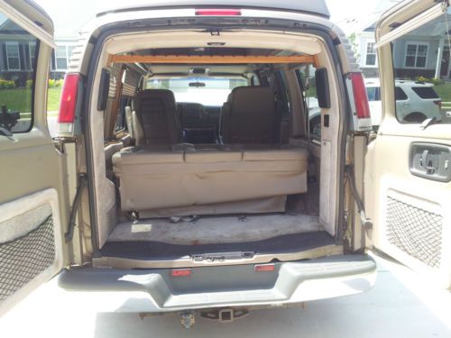1999 Chevy conversion van, Good cond. Low Mileage, I bought this Van 18 months ago to travel back and forth to Florida in I have made 5 trips Florida in it., But I don't need it anymore. I just got back the end of May from Disney World No problems at all. I am the second Owner I bought it from a Ford dealer in Mount Airy Md it was a trade in from the orig. owner. I have put about 15000 miles on it with no problems. The dealership put on new tires, a water pump, serp. belt, and tie rod ends. I have the paperwork for the work that was done.There are no leaks from engine or trans, the drivers arm rest is the only part of the interior that needs replacing the pad is good but the cover is bad, you could take one of from one of the rear captains chair if you wanted to and change them out.The outside has a couple of scratches, and the one small dent in the rear door, nothing major.carpeting has a few small stains as is to be expected with a vehicle of this age but not worn out, and it has all the floor mats, all the window day night shades are like new, the rest of interior is in very good shape, the rear sofa bed is electric to make it easier to put up and down. The only thing that doesn't work quite right is the fuel gauge it works fine until it gets below 1/4 of a tank and then gets erratic. A/c is good and cold has rear blowers and roof vents, has rear stereo and audio jacks with 2 sets of headphones so you can watch tv play games or listen to music without driving the front pass. crazy. It has power and heated mirrors,power drivers seat, p/w , p/s, alarm system cd player, and class #3 hitch and 7 pin trailer plug and electric brake module, Thanks for looking if you have any questions please email me and I'll get back to you as soon as possible. THIS IS A NO RESERVE AUCTION FINAL BID WINS GOOD LUCK AND HAVE FUN BIDDING This is a relisting because the high bidder did not contact me after even after a week and many emails no response at all