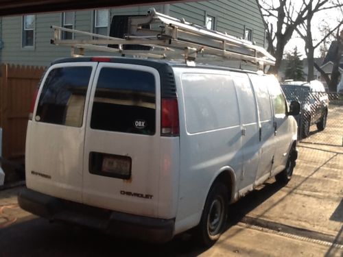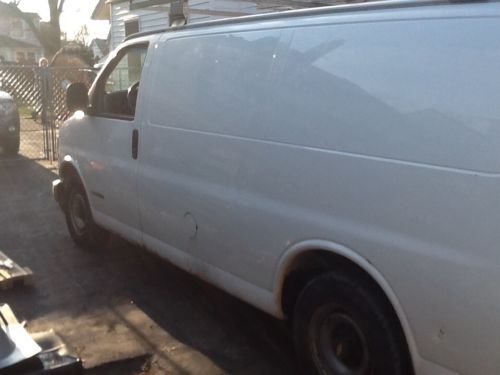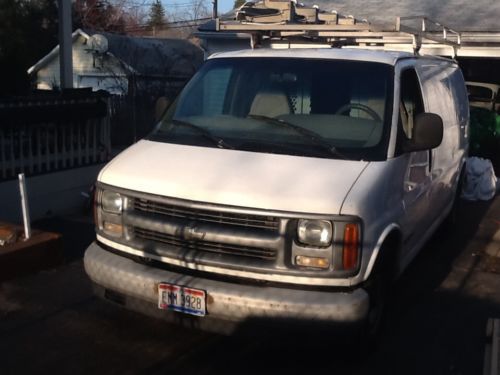 This is a 2000 chevy express 2500 work truck. The only issues with this van are the ac dose not work and the service engine light has been on and off now for a couple years due to code for o2 sensor,but dose not affect van in any way! Also wipers only work on high. In the last year I had the radiator,water pump,and fuel pump replaced.this van runs great with no shakes or shimmying! The breaks are good with no problems and the motor and trans are strong with no issues! I drove this van to Wisconsin and back with no problems a couple weeks ago so mechanically their are no problems and has lots of life left in it. The rockers are starting to rust and the side barn doors are waisted with rust on the bottoms. The hinges on side door are going bad but still work and the back left door latch opens from pulling lever inside. The mileage is 216340 and will continue to go up during auction as van will still be in regular service until Sunday morning when it will be cleaned out. The rest of this van is really solid and has no problems. The rack on top will be removed but the shelving will remain with van. This van can be viewed and test driven upon request,thanks and good luck!