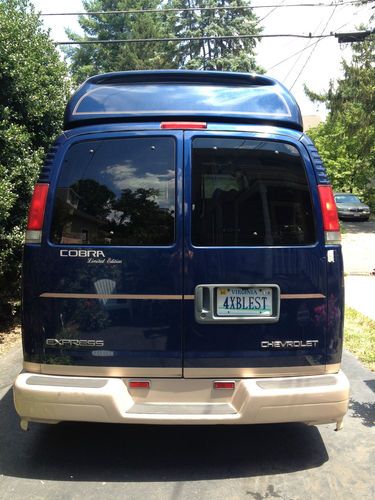 Here is a GORGEOUS, 2002 Chevy Express Luxury High Top Conversion Van! It has been driven gently and the odometer reads just over 78,000 miles. It has a V8 engine, and the car has never given us any trouble in any way. However, when we decided to sell, we took it to Koons Chevrolet and had them do a diagnostic, and then do absolutely every thing under the hood to bring it to perfect condition. It even has BRAND NEW TIRES, installed on August 7th!! The pleated shades on the back windows are in need of repair, and this is the ONLY thing that we know of that is not in perfect working order on this car. Huge luggage capacity....you won't believe how much cargo space this car has!! You will need to look far and wide to find a gem like this one!! Here are some of the many features of this luxury van: