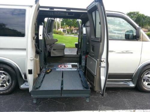 Condition: Like-new 2004 Chevrolet Express with Explorer Conversion Wheelchair van: Silver exterior, gray leather interior, with seating for up to 6. The lift is a side door unit that lifts the person in the wheelchair comfortably into the van where a hard surface floor awaits. The wheelchair is then secured with brand new lock mechanism. Some of the features of this van include: Raised sport roof Dual AC Power rear sofa bed Radio/CD TV DVD VCR Power driver seat with Heated feature Indirect Lighting Leather and walnut aluminum decor Chrome alloy wheels New tires 108,200 miles Shipping: Costs to be covered by buyer Payment: certified check, cashier's check or cash |
