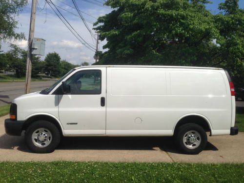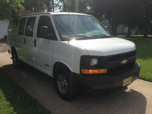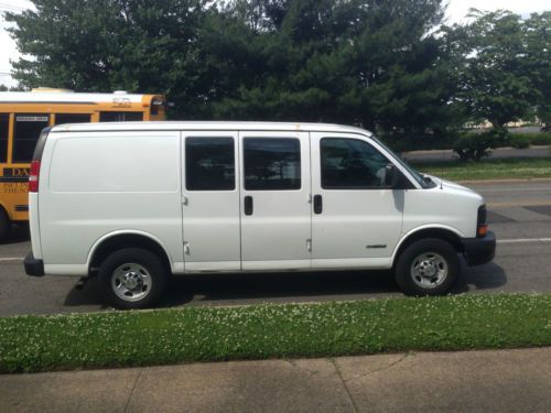 2006 Chevy Express 2500 4.8l 4 door van. Vehicle has been meticulously maintained and is very clean. Has a carpet liner in the interior with no stains or tears. Van was used to transport Laundry between my two stores, but is larger than I need. All maintenance is up to date and Engine runs very Strong. Transmission shifts flawlessly and fluid is pink in color. Has always been changed as part of routine maintenance. Air Conditioning is Ice cold, and Heat blows Hot. Suspension, steering and brakes are all very tight as they should be. Van has never been in an accident, and has 3 very good tires and the fourth has about 20% tread left. The other rear tire was replaced when I ran over a screw. No warning lights are on in the vehicle, and does not produce any codes when checked. No chips in any of the glass, and all lights, flashers, blinkers, and electrical accessories are working properly. This van needs nothing, and is in near mint condition And has recently just passed NJ Two year safety & emissions inspection. Has a very small ding in the front bumper and a tiny scuff on the passenger side mirror. I took pictures to show these two minor flaws. Windows & Locks are Manual. Other than that the Van is in absolutely great condition and I welcome any phone calls, questions, or inspections! Good luck bidding!