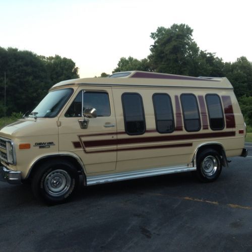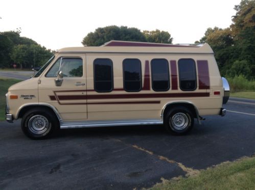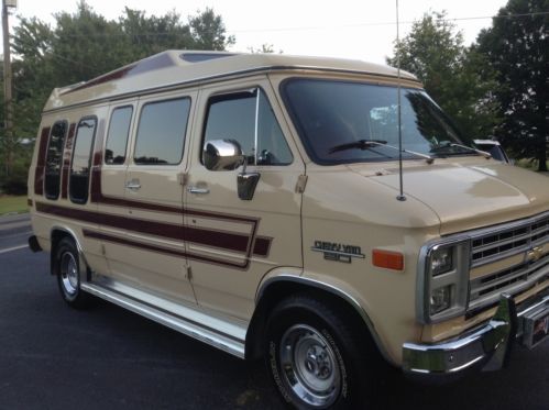Up for sale is a 1985 Chevrolet g20 bonaventure koach kraft conversion van .is a local nc van only has 72k original miles .matching numbers .this is one super nice ole van it is a rust free van very clean including the undercarriage it is almost brand new has light road debris .the van has a couple small flaws the worst of it is two place one on the rear pass door and one on the rear quarter panel were the clear cote is pealed two very small places that I have pictured .as for the interior very flawless has all original curtains as well as floor mats and superb seats very clean. has a 305v8 engine and automatic transmission also has about a new set of Michelin tires.all decals including options and engine tuning specs under hood .this is one excellent piece of history vans this new of this era are very hard to find in this condition especially one that is matching numbers and rust free dont miss this chance feel free to call Chris with questions at 336-416-5631 thanks let the pictures do the talking and more is available upon request