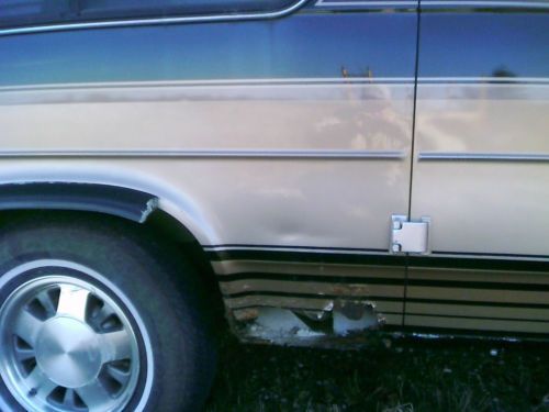 SOME RUST AND CLEAR COAT PEALING INTERIOR IN GOOD CONDITION FOR IT'S AGE MECHANICALLY EVERYTHING WORKS AND HAS BEEN MAINTAINED WE USED IT ON TRIP TO OREGON THIS SUMMER. HAS POWER WINDOWS, LOCK, SEATS AS WELL AS REAR ELECTRIC FOLD DOWN SEAT. NEW AC COMPRESSOR AND HAS FRONT AND REAR HEAT AND AIR. NEW BRAKES AND TIRES. THE ONLY REASON FOR SELLING IS WE BOUGHT ONE WITH DIESEL MOTOR. THIS IS AN OLDER VAN BUT WE USE IT AND IF ANYTHING GOES BAD WE FIX IT. YOU CAN BUY THIS VAN AND BE READY TO TAKE IT ANYWHERE WITHOUT WONDERING IF YOU WILL GET THERE.BID TO GET IT I WILL SET LOW RESERVE OR MAYBE NO RESERVE