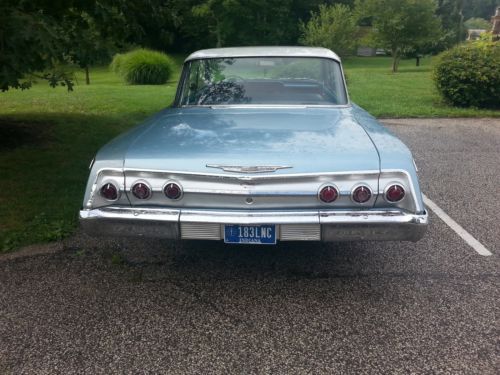 I am selling my 1962 Impala 4-Door "No Post" with original 327 engine. The car has an excellent interior with brand new door panels. The car does, however, have rust issues on the doglegs, door corners, and rocker panel. This car will make someone an easy project. The car runs strong and has a professionally rebuilt 2-speed powerglide transmission with less than 50 miles. The car also comes with Cragar wheels. Feel free to call if you have any questions. 812-454-3063