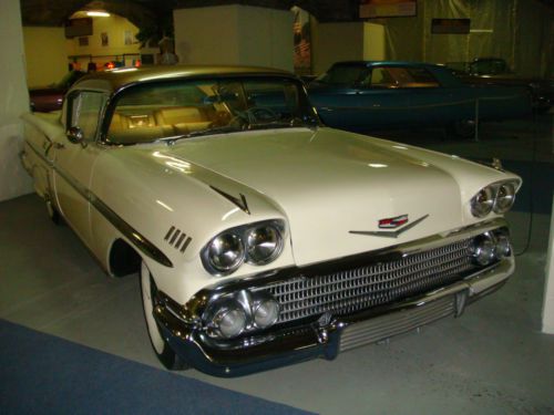 1958 CHEVROLET IMPALA 2DOOR OFFERED FOR SALE BY DREAMCARS MUSEUM OF HUNGARY. The Dreamcars Museum was established by a private collector in 2006. The owner of the museum lived in Sweden more than 30 years and collects cars since the 80' in. The colloction contains more than 70 classic vintage cars from the late '40s to the early 70's and a few the being sold now. All cars in mint condition. Most of the cars from American manufacturers but we have European classic as well. Please visit our homepage www.alomautokiallitas.hu. if you interested in other classic cars ont contact us: info@alomautokiallitas.hu. WE speaks English, German, Swedish, Italian and Hungarian.