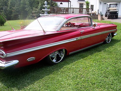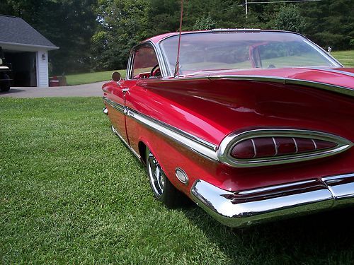 HERE IS YOUR CHANCE TO A 59 IMPALA x 348 car.THIS CAR IS ONE OF THE MOST SOLID CARS I'VE EVER SEEN.I BOUGHT IT 3 YEARS AGO AND WAS GONNA MAKE IT A HIGH END SHOW CAR BUT HAVEN'T HAD A CHANCE TO START ON THE BODY YET.IT HAS ABOUT 16K + IN PARTS BEEN PUT ON THIS THING BUT STILL NEEDS A GOOD PAINT JOB AN SOME INTERIOR WORK,EXHAUST,WIRING STUFF LIKE THAT.