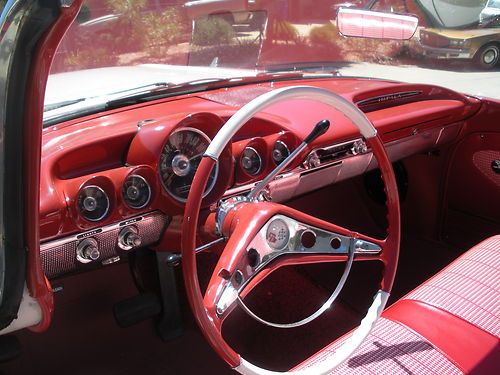 Options: push button am radio, fender skirts, dual antennas (one dummy), front fender fins, Convertible
