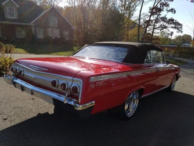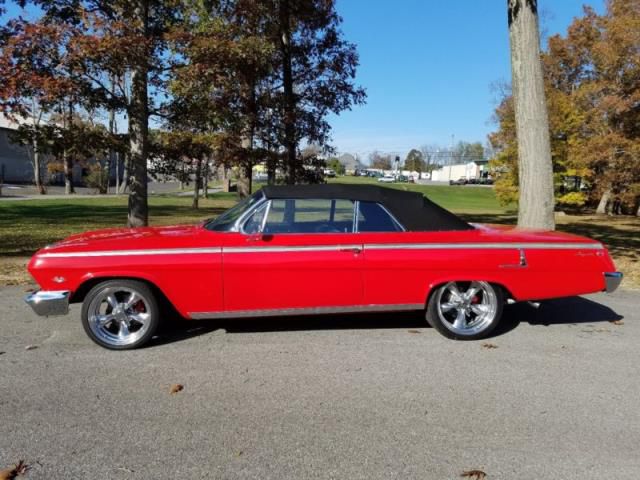 For sale we have a 1962 Chevrolet Impala Convertible. This is a beautiful rust free car and has an exceptionally slick paint job as illustrated in the pictures. This car comes complete with 4-wheel disc brakes, vintage air, new rebuild on the 283 engine and turbo 350 transmission. The car is very dependable and drives out very well. We have performed upgrades such as dual brake master cylinder and upgraded alternator. This car also has a power convertible top and custom 18 front and 20 rear wheels. This is an exceptional car at a fair price! The pictures do not do the condition of the car justice.