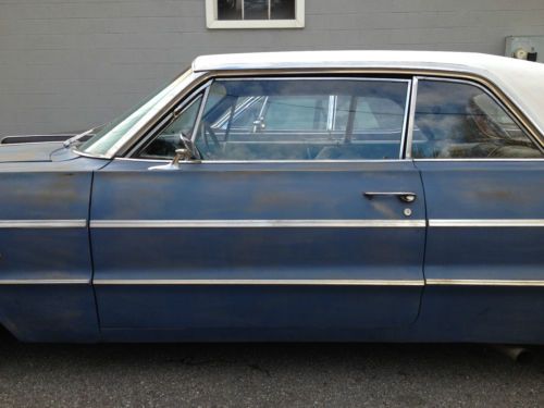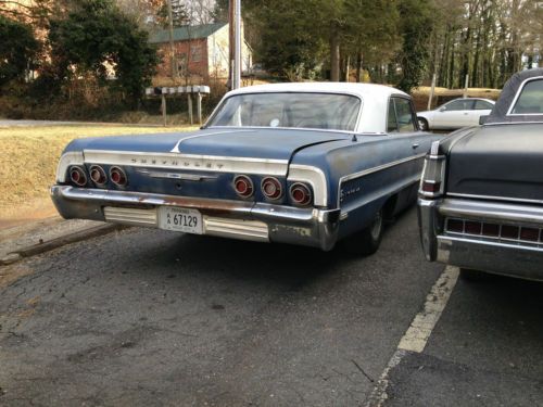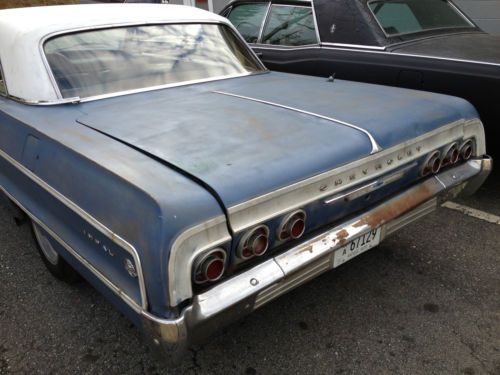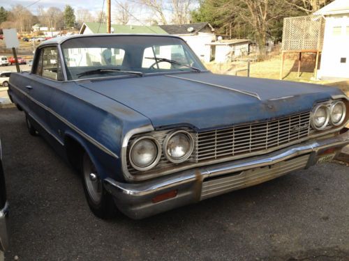 1964 Chevrolet Impala You are looking at a piece of history; a 1964 Chevrolet Impala. It is very hard to even find pieces to these cars, let alone find a whole car, and one that runs and drives. This car is great for absolutely anything. This is NOT a show car by any means and has not been restored. It has been left in its “original” condition and will make for an absolutely great restoration project or cruiser car. You will not be able to pull it out of the driveway without someone asking you questions about it or people taking pictures of it. It is an absolute blast to own and drive. After a complete restoration, you would have one very rare and hard to find car. You could also leave the car exactly as it sits and drive it for years to come.