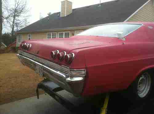 You're bidding on a 1965 Chevy Impala. No engine/transmission. The body is in pretty good shape. The reason that I'm selling is because I currently have too many projects. No title. The purchaser will receive a bill of sale. Bid with confidence!!