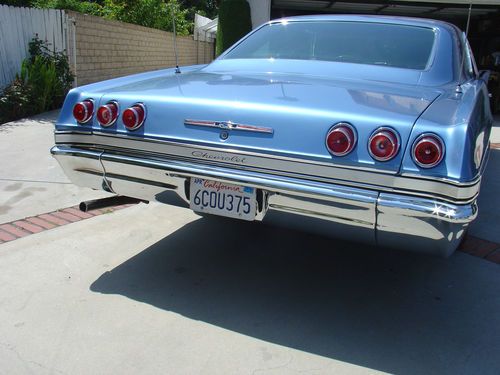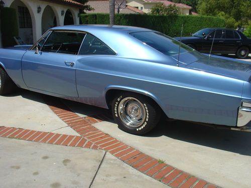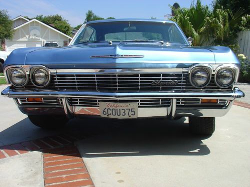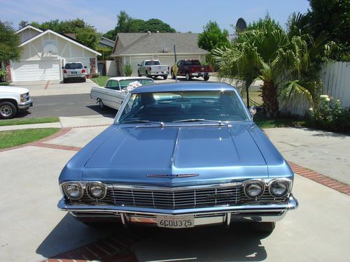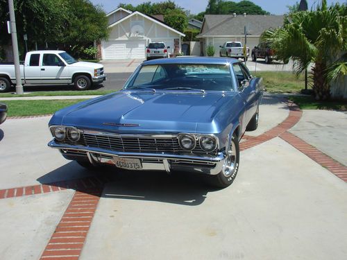 For sale i got an original California Car 1965 Chevy Impala Coupe built right here at the Los Angeles GM factory. Car is in great shape for its age, paint is about a 9 out of 10, interior is super clean also. Original 327 engine and powerglide tranny that runs excellent and smooth, has power steering and is an AC car. Has some kind of rally wheels on it with new tires. Everything on this car works all the interior lights, turn signals, dash guages, headlights. Car has all brand new trim on it, tailights, grill, rear trunk emblems, moldings, dual rear antennas, and both front and rear bumper have been triple chromed to a show finish. Undercarriage is super clean and 100% rust free no rust ANYWHERE on this car. Car is being sold As-Is with no warranty and is the buyers responsibilty to check car prior to bidding. Car is Located in Los Angeles and has a clean title in hand. I have sold a couple cars to overseas buyers and out of state buyers in the past and can offer to deliver the car to any of the shipping companys here in southern california or can give you the numbers to a few shipping companys ive used many times with no issues. Most of my cars end up selling before the auctions even end so i have the right to end the auction early if the car sells locally. IF YOU HAVE ANY QUESTIONS YOU CAN CALL ME ON MY CELL AT 714-401-3854 thanks