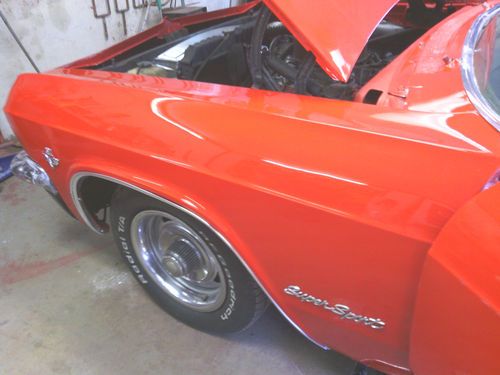what I have for sell is a sweet classic muscle car,1st of all I want to say I am 48 yrs old,reason I am telling that so you don't think I am some youngster when I start talking about uncles and great uncles,ok this cars been in the family for all of its life,my uncle Kevin got it from his dad,who got it from his brother who bought it new,have papers from dealers about warranty when car was purchased,all owners guides,clear title,we have been trying to restore this beauty to its former glory ,but the tax man has come a knocking so my baby has to go to pay some old bills that was long forgot about least by us..car has a 327 with 461 dbl hump heads,2 speed powerglide,side pipes,runs and drives,power steering, and power brakes,had springs chopped for a lower more aggressive look,all lights work on the outside of car, uncle kevin had some guy do some body work on it a couple years ago,that alright I guess just not perfect,its not show quality,but very presentable,its is missing the right rear cove molding under tail light see pic.,and needs a headliner,stuff we was going to do just never got around to it,,has corvette wheels on it right now but do have original wheels and ss hub caps that will go with the car if winner likes,the seats in this car are original never been reupholstered,not sure about radio but it an old 8 track,car needs all window felts an rubber replaced, another thing we didnt get around to doing,the drivers door rubbed the fender and scratched the paint see pic. and theres a small spot on drivers door where when the guy buffed the car he got alittle heavy on the body line not to bad but again not a show winning car yet,frame floors seem fine as well as trunk,inter quarters has a little rust..car is not ready to win any prices but again its a hell of a start,bid to win,there are not many of these true ss around,it has one brake grabbing which we will be looking at tomorrow, im sure its from sitting around,I will help anyway I can in loading car or could pick you up at airport or train,but trailing a car like this I would thank is best,car hasnt seen many miles in the past 25yrs,but its the winning bidders decision ,, I was going to put a link with lots of pic's but I guess ebay dont let us do that anymore,so I do have other pic's i will post all i can