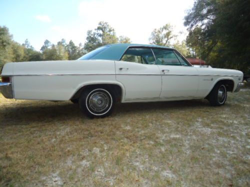 up for auction is a nice and clean 1966 Chevrolet Impala 4 door -- no post.I am selling this car for a friend and he said that the car was restored about 5 or 6 years ago and then due to health issues parked.The Car was driven about 200 mls in the last days without any problems.The Engine is a 327V8 with a 2 speed automatic transmission.The Engine starts right up and runs great,the transmission shifts very smooth,no overheating or other mechanical issues.Lights,Turnsignals,Horn,wipers etc are all in working order,Instruments are all working.all glass is in good condition and the windows roll up and down as they should.This is a original AC car,everything is there except pulley and belts,heater and blower work great.They Interior is in very nice shape,no rips or tears-looks like it was completely redone during that restauration which includes carpet,seats,headliner,doorpanels etc.The Body itself is nice and straight and shows just normal wear and tear.Steering is nice and tied - powersteering and powerbrakes,good tires all around,you can get in that car and drive it anywhere,the trunk,and engine compartment are rust free as are the floors,they show only service rust from sitting. Along with the car the potential buyer will get the original service manual as shown in the picture and also a selection of "Wards Motor record Books for the years 1966 to 1990.The first owner kept a particually record of all service costs and repairs, and the fuel he used-imaging to fill up you tank today with 38 gal for $ 14-now it is the other way around. This car is a nice daily driver - it needs a new paint job and thats about it - you can enjoy driving it as it is or paint it the way you like it